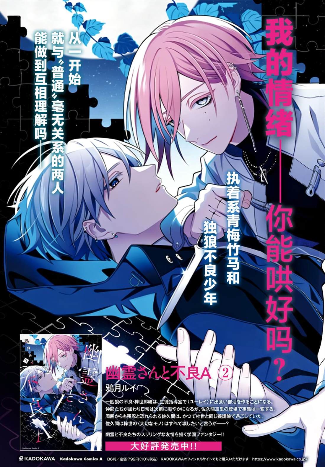 描绘了幽灵少年和不良少年的惊险友情、校园幻想作!! 梓世那岐转学进了在大街上也臭名昭著的、在无人使用的学生指导室遇见了自称的幽灵少年。 对无论怎么无视也纠缠不休地说著「一起来玩吧」的幽灵无可奈何的梓世、和幽灵进行了「如果赢了游戏,幽灵就离;如果输了游戏,就答应幽灵一件事」的打赌。 明明应该是[]是无关紧要的〈打赌〉、梓世的学校生活却发生了巨大的变化——![-折叠]