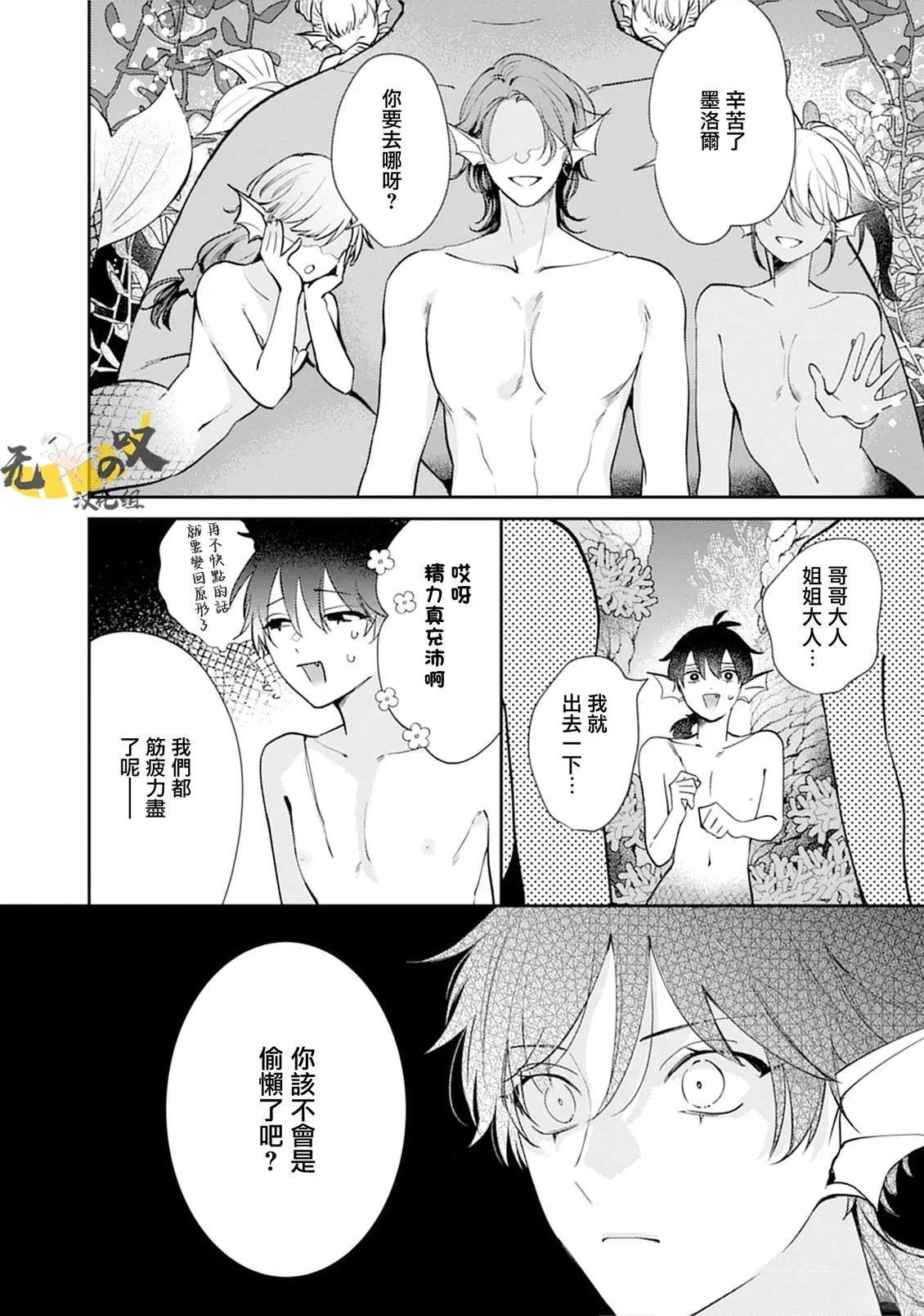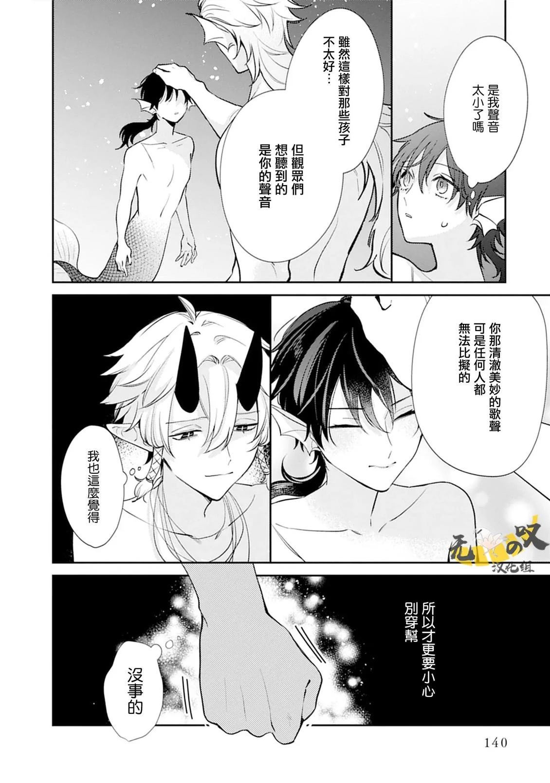 在那个瞬间,人鱼第一次知晓了什么是爱情——。 梅洛尔是一位姿容昳丽的人鱼王子,他拥有能够魅惑所有生物的美妙歌声 他的好友克拉特,是被海中的大家看作“恶魔“所忌惮的存在。 那一天,梅洛尔救下了掉落海中的人类王子·威尔,这是2人命运般的邂逅。 即使被克拉特警告「与人类交好非常危险」,梅洛尔也并不[]不在乎,就这样渐渐迷恋上威尔了吗……!? 人鱼王子和人类王子和扁面蛸之间,闻所未闻的三角美人鱼故事幕[-折叠]