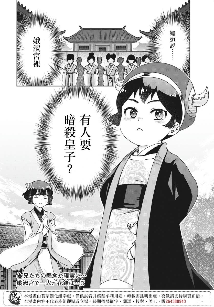 继承了穷凶极恶父亲的凶狠眼神的少女花铃进入了后宫想要谋求舒畅的生活,而所有人都因为她的父亲而对她避之不及。某天,花铃遇到了当朝的幼帝……她决定为了保护年幼而孤独的皇帝而战。而后宫中又有多少阴谋,在等著他们……