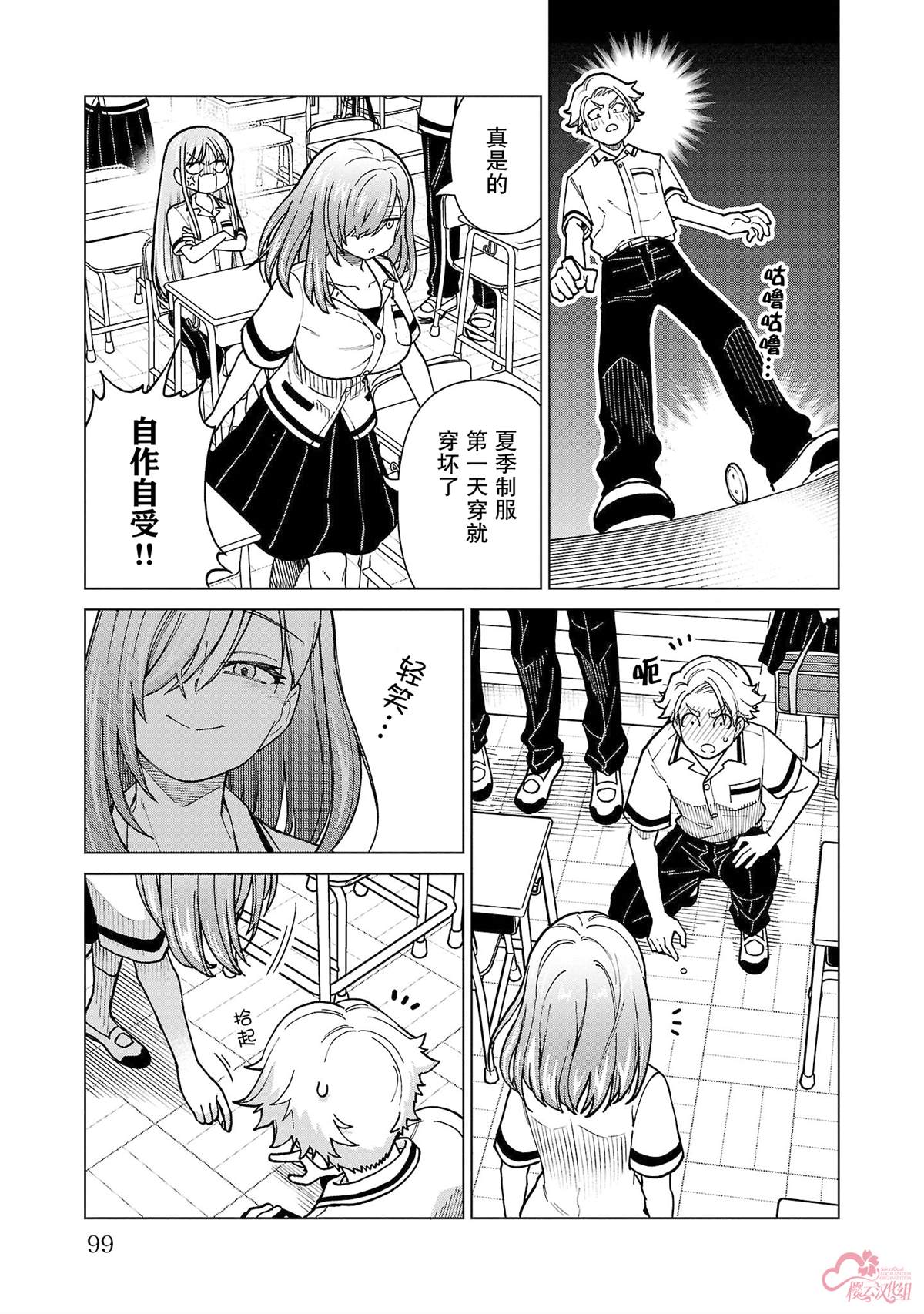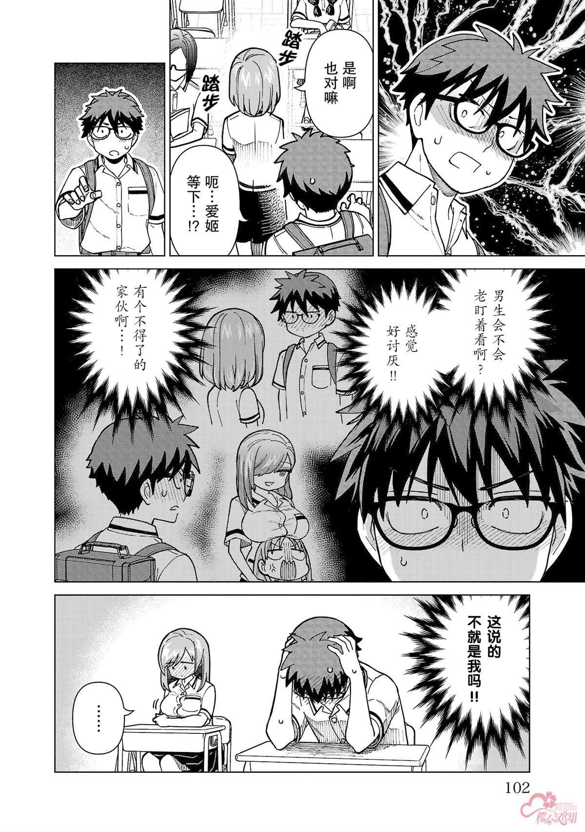 社畜和辣妹JK在拥挤的电车里,浑身大汗地,聊天。