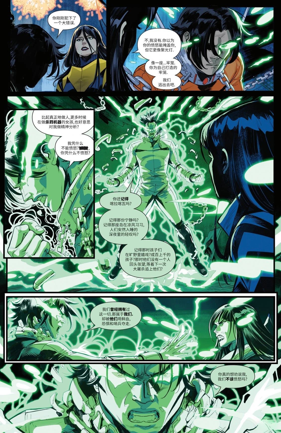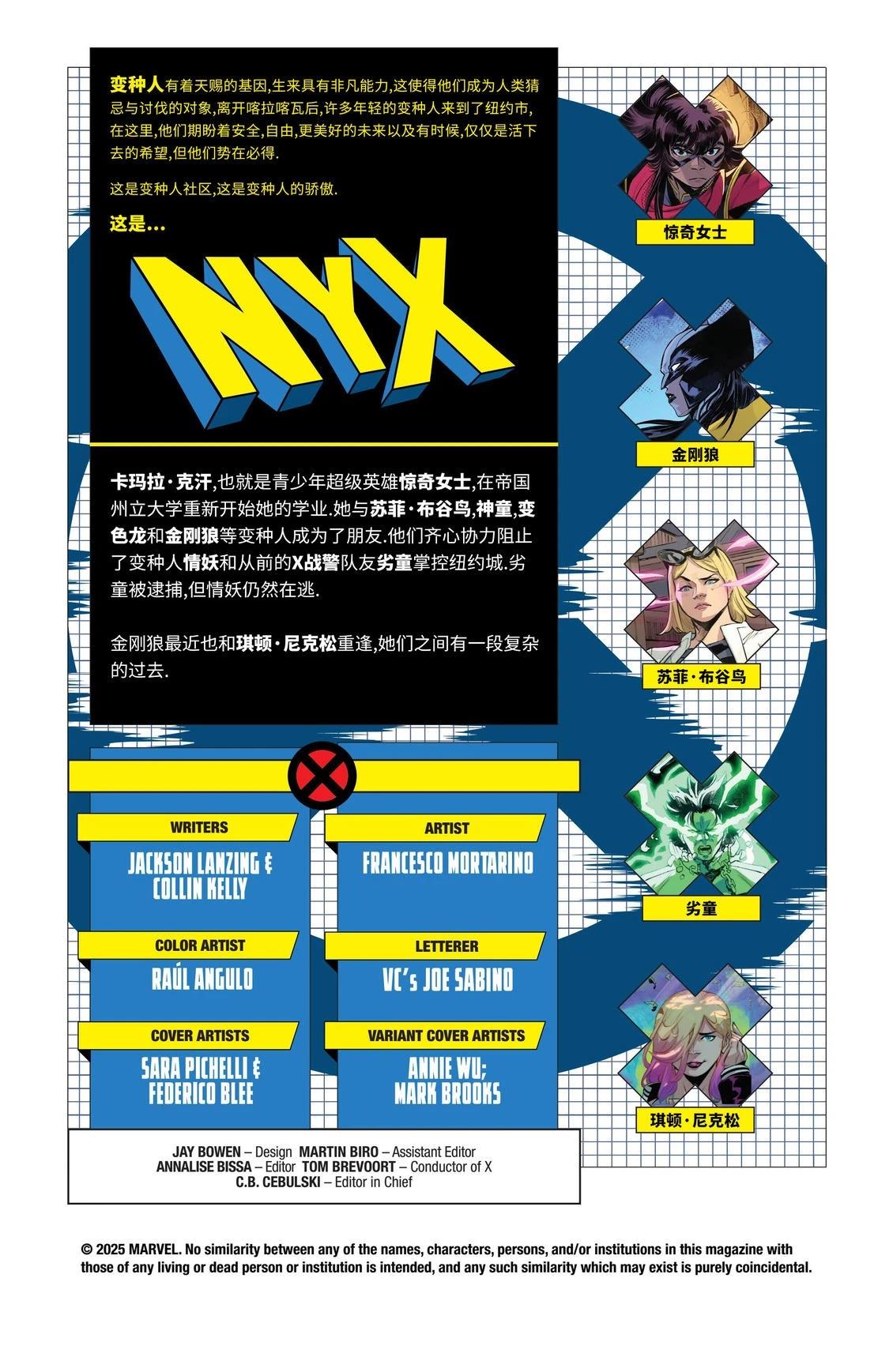 惊奇女士正在下东区的霓虹灯光下拥抱她的变种人生活。变色龙正在努力克服困难。金刚狼潜藏在布什威克的阴影中保卫她的同胞。神童正在书写历史。而苏菲·布谷鸟正在探索自己的道路。 令人沮丧的新闻报道接二连三。街上危险重重。地下危机四伏。邪恶从四面八方包围而来。但他们势在必得。这是变种人社区。这是变种人的骄傲[]傲。这里是——NYX[-折叠]